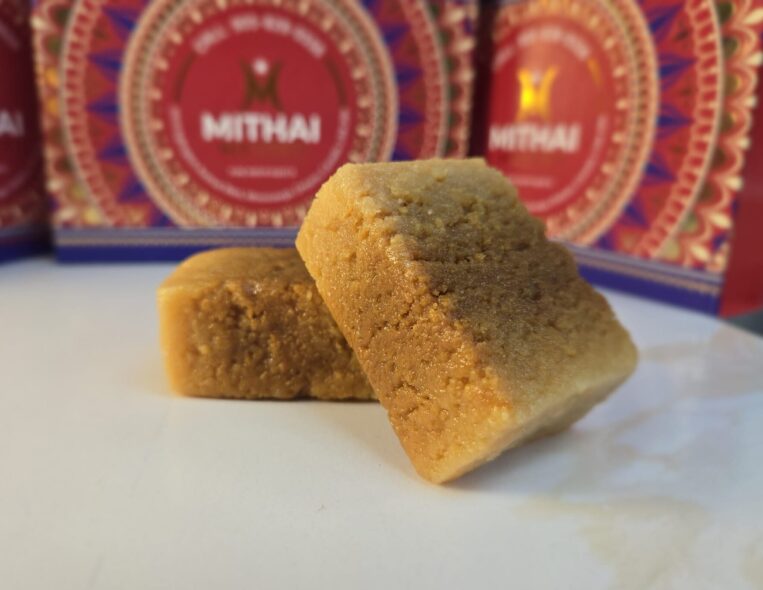 Milk Cake Mithai is a traditional Pakistani sweet made from milk, sugar, and a hint of cardamom. This dense and creamy dessert has a caramelized flavor and a soft, grainy texture, achieved by slowly simmering and reducing the milk until it thickens. Often garnished with slivers of nuts, Milk Cake is a popular choice for festivals, celebrations, and special occasions, loved for its rich taste and melt-in-the-mouth indulgence.